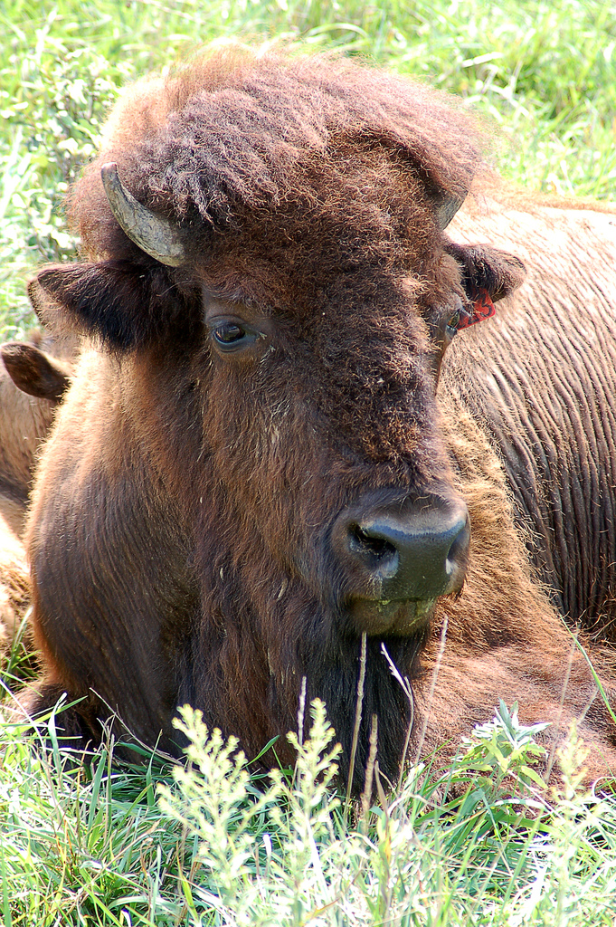 | Buffalo graze on the plain. This was taken at a rest area during the tour in the open air bus. |