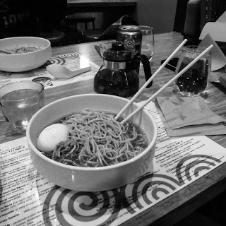 It was a cool 40 degrees F walking down Euclid Avenue at 7:00pm. My wife and I were getting cold and we had a few hours to kill. We were getting hungry and we spied through the front window. I recognized the familiar site of Ramen bowls! Hot soupy broth and noodles! Yes, please!!