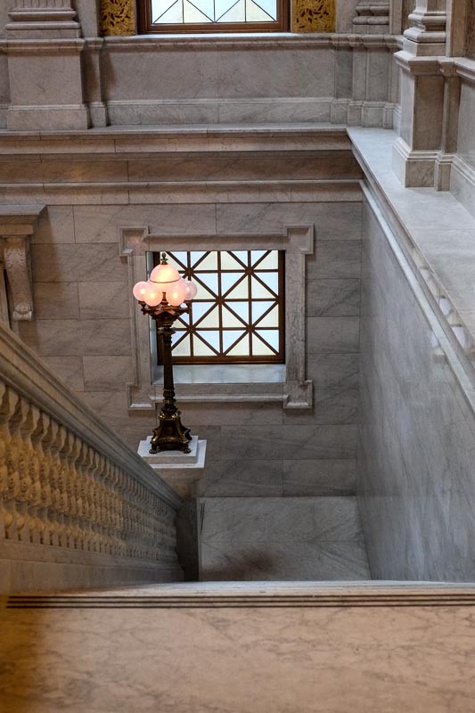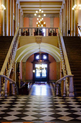 The architecture is very fascinating and very intricate and detailed. A lot of the handrails of the stairs are made of marble, and the hall floors are very detailed with small tiles that make patterns.