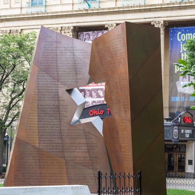 The memorial can be found between the entrance of the Ohio Theater and South Plaza of the Ohio Statehouse.