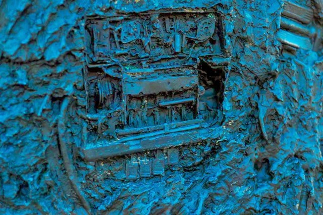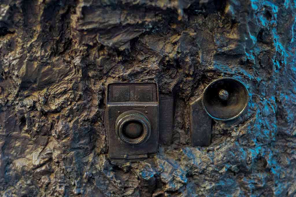 | An old camera and potato masher flash were found within one of the sculptures |