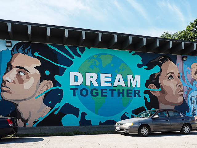 The included images in this article show some of the art work that the artists are putting up. There are also some images of the state of some of the buildings as well. Definitely a work in progress.