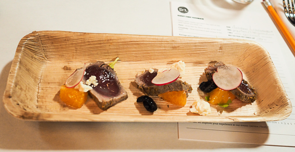 Promptly at the starting time, we are seated and the hostess and chef come out to explain a little bit about the DinnerLab experience for the newbies as well as cover the menu.