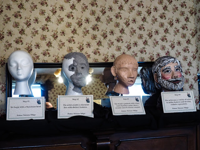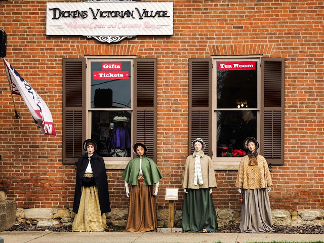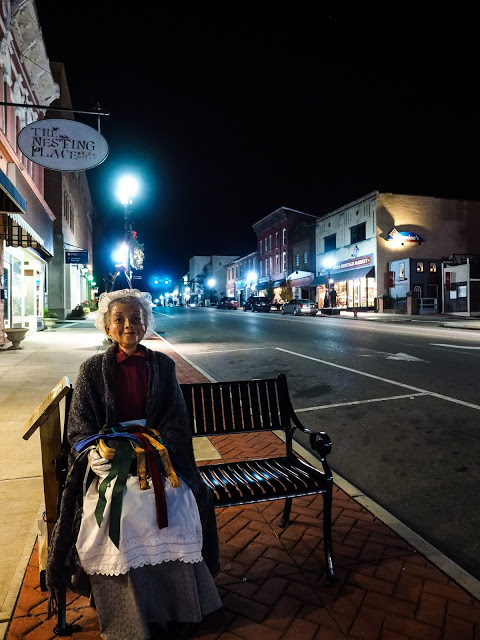 We didn’t forget about the scenes all scattered through downtown! We preferred to see them at night, lit up by the street lights. Walk up and down both sides of a long stretch of Wheeling Avenue and there are scenes from A Christmas Carol. All these mannequins are hand made locally. The artists start with a foam head, then apply a type of modeling clay like compound to sculpt the features, then paint and add details. The bodies are made of wooden frames, covered in bubble wrap, then clothed in their specific scene. More details about the process can be had at the visitor’s center.