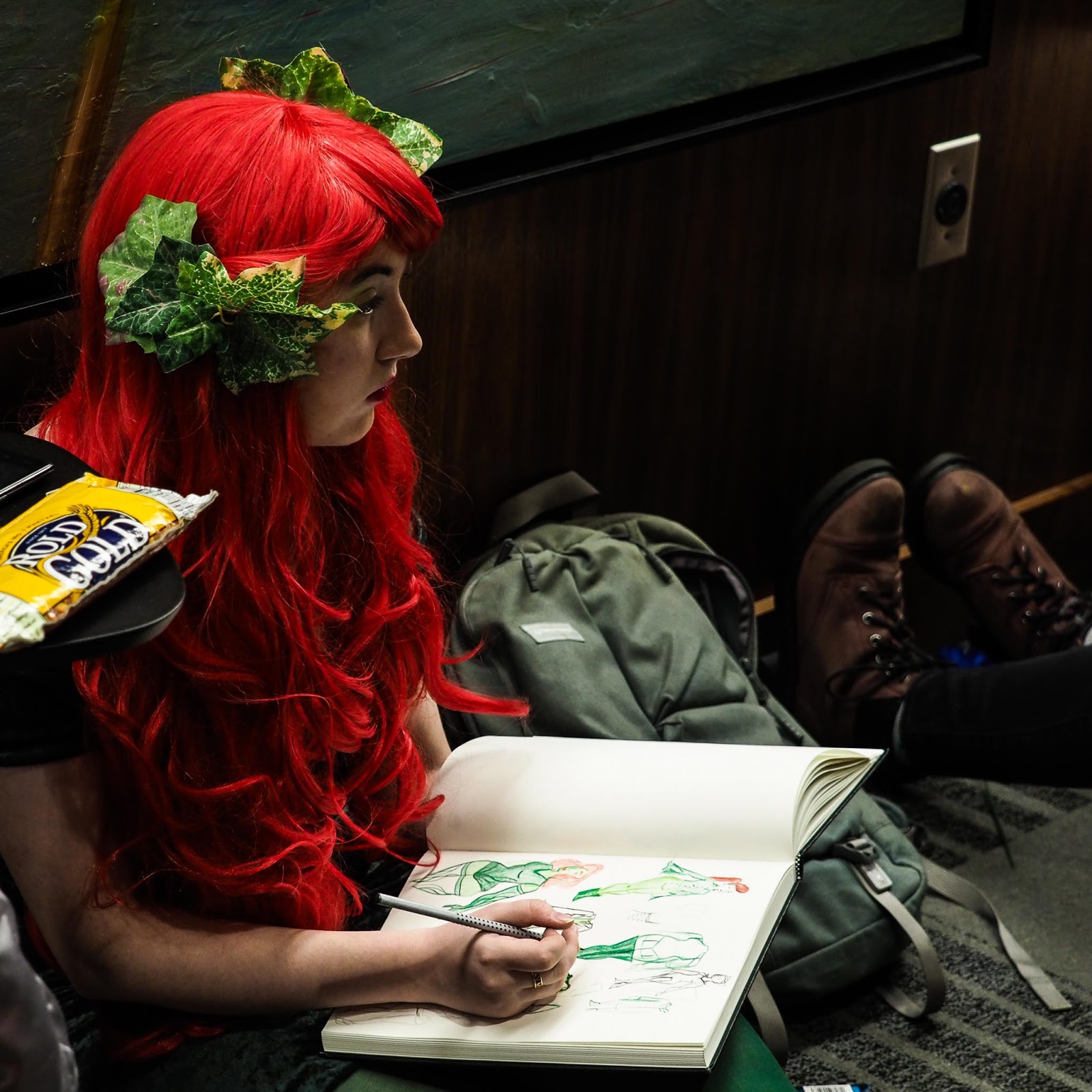| Attendees continue to design costumes in their downtime between events |