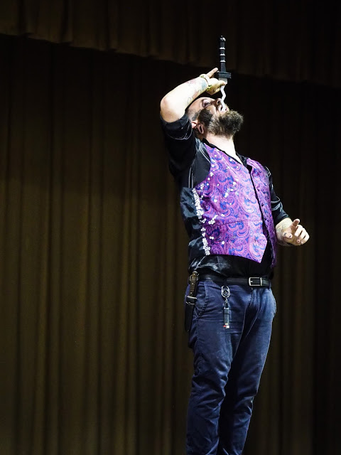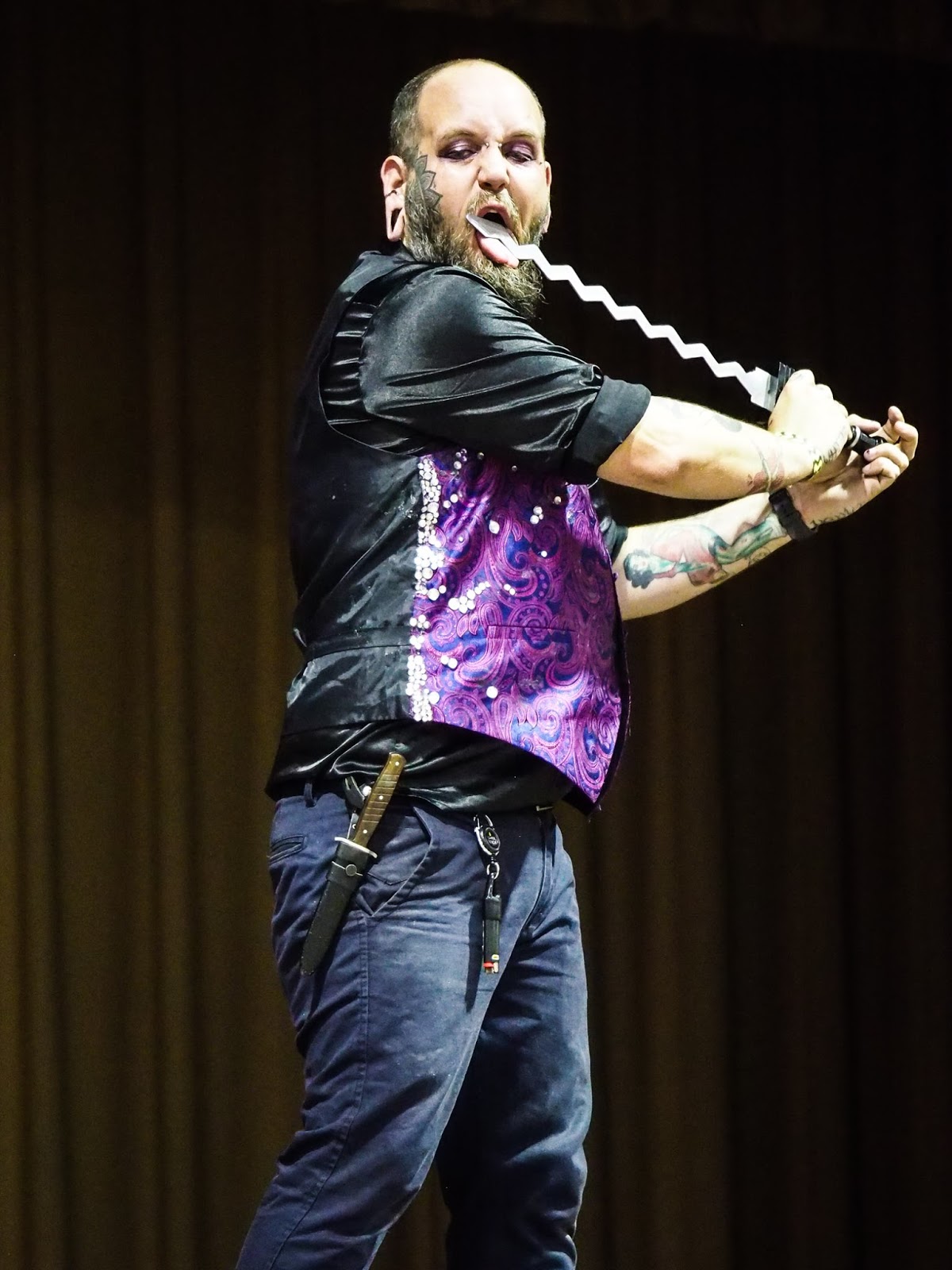 Below, a couple started off with some bullwhip demonstrations, but then soon went to something more dangerous….