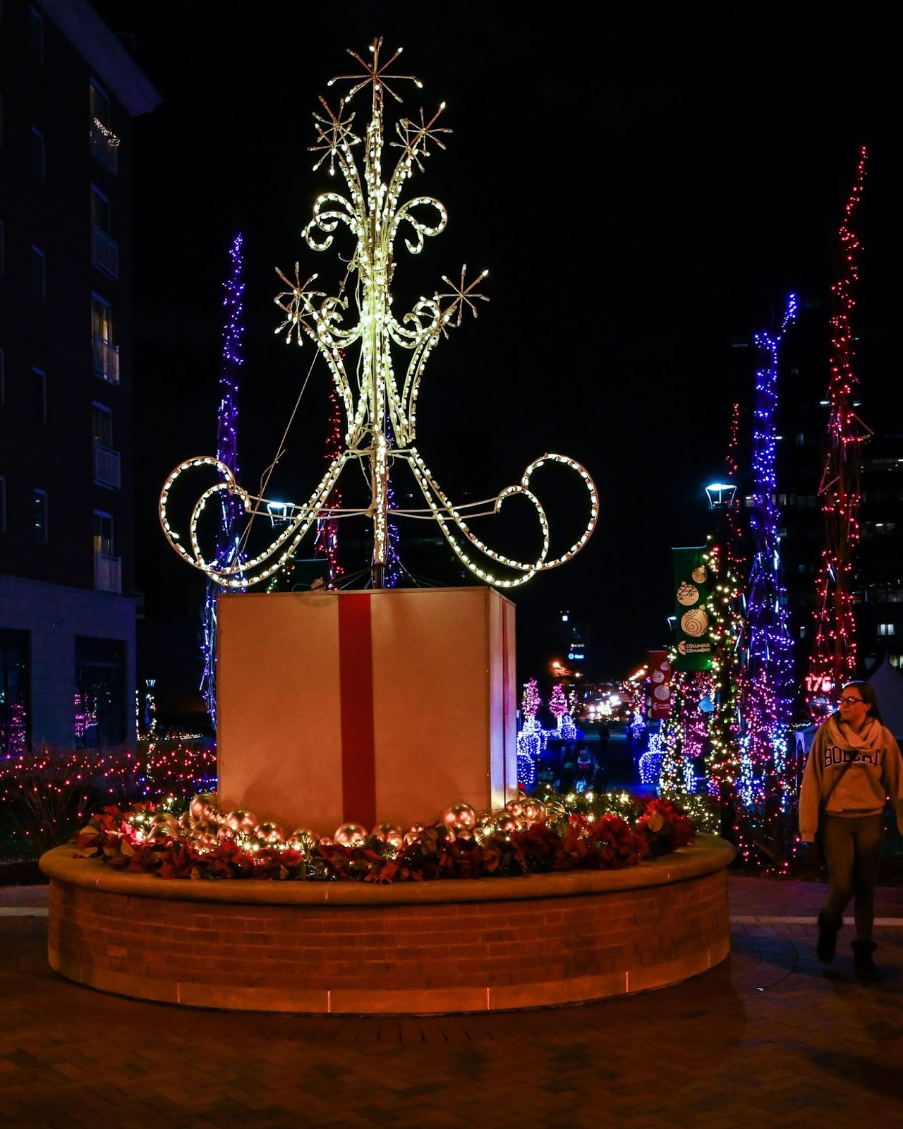 Coming to life with hundreds of thousands of holiday lights, the Columbus Commons is a popular area in downtown Columbus to visit.