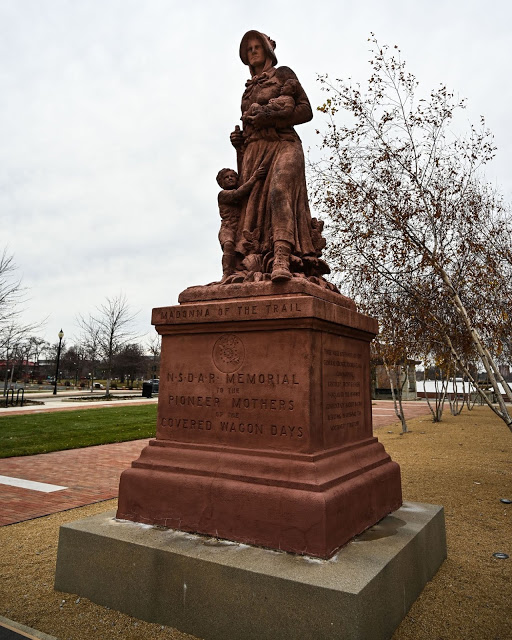 At 21 Fisher Street in downtown Springfield, OH is a statue called Madonna Of The Trail. This memorial commemorates the pioneer mothers of the covered wagon era. This was brought to Springfield by the National Society Daughters of the American Revolution(NSDAR).