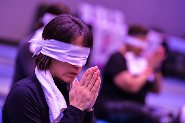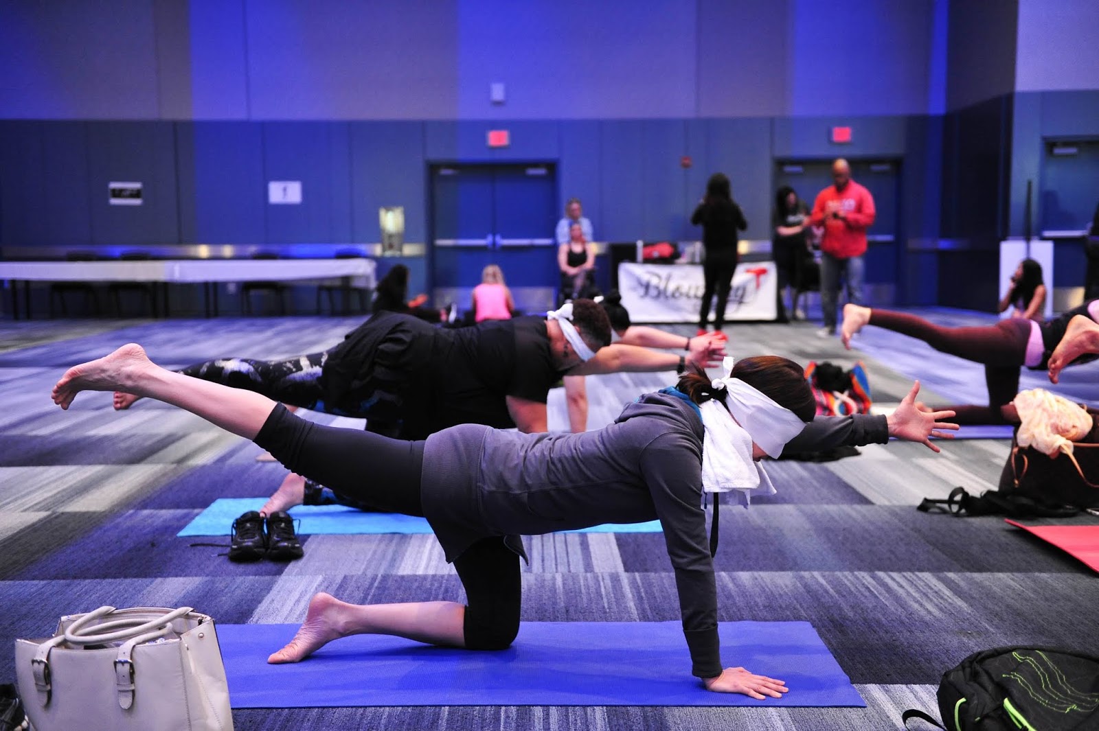 Yoga is also represented at the Arnold. At this session, sensory deprivation is used to help block out the outside influences of the world and get the practitioners focused.