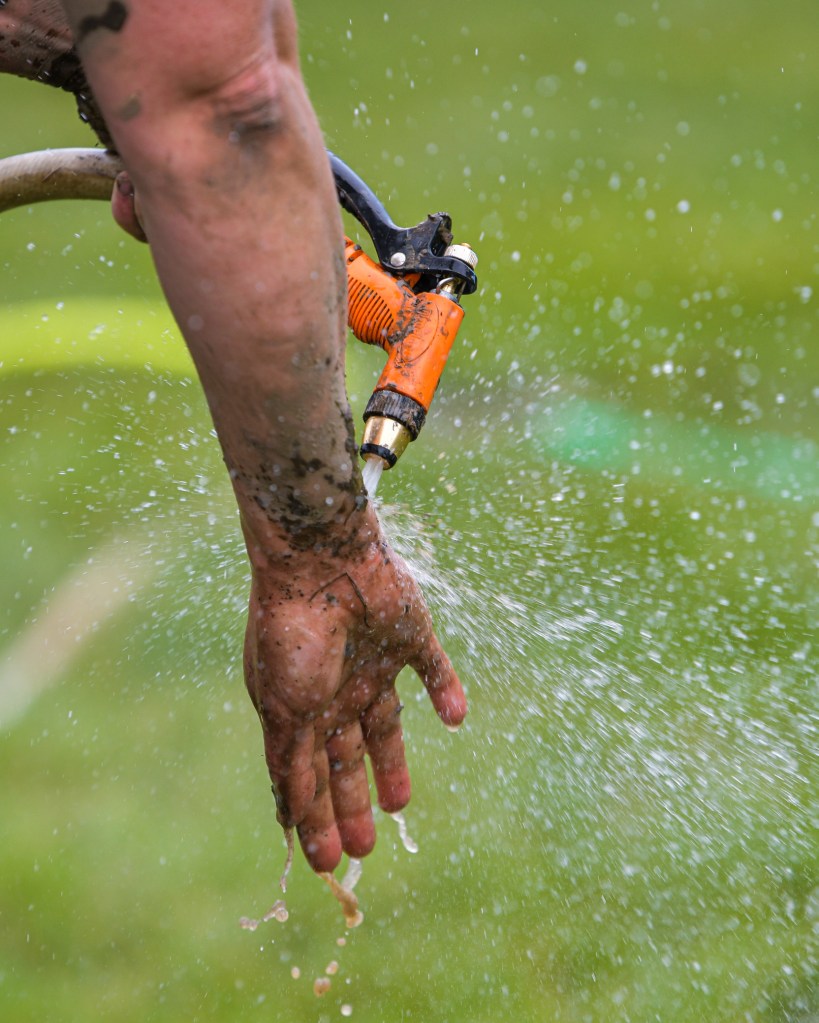 In order to prevent congestion in the course, the race begins with a staggered start. Waves of dirt, hungry athletes run from the starting position into the field ahead of them with the first obstacle being a murky, muddy water crossing.