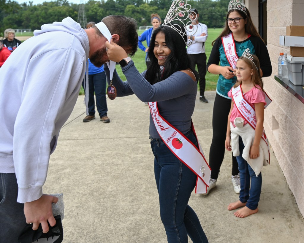 The Tomato Festival Royal Court donned the winners with their medals and prize swag.