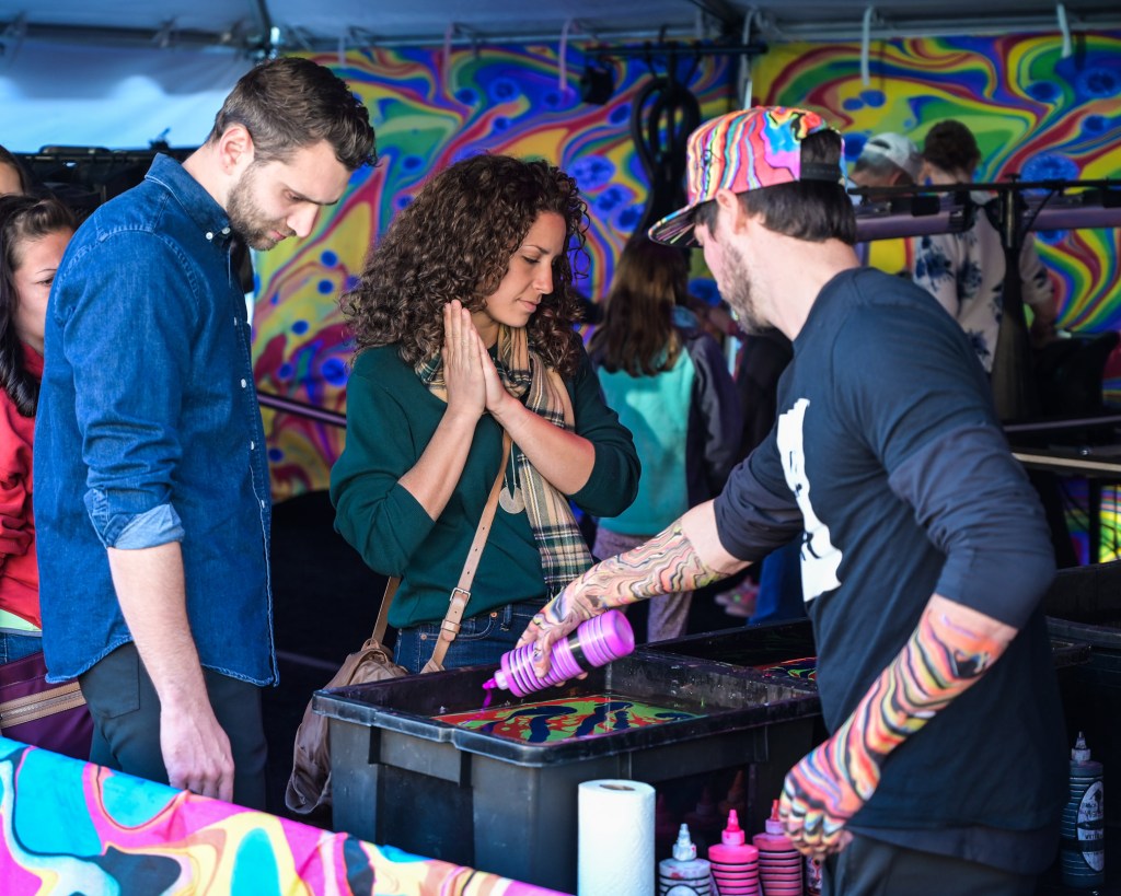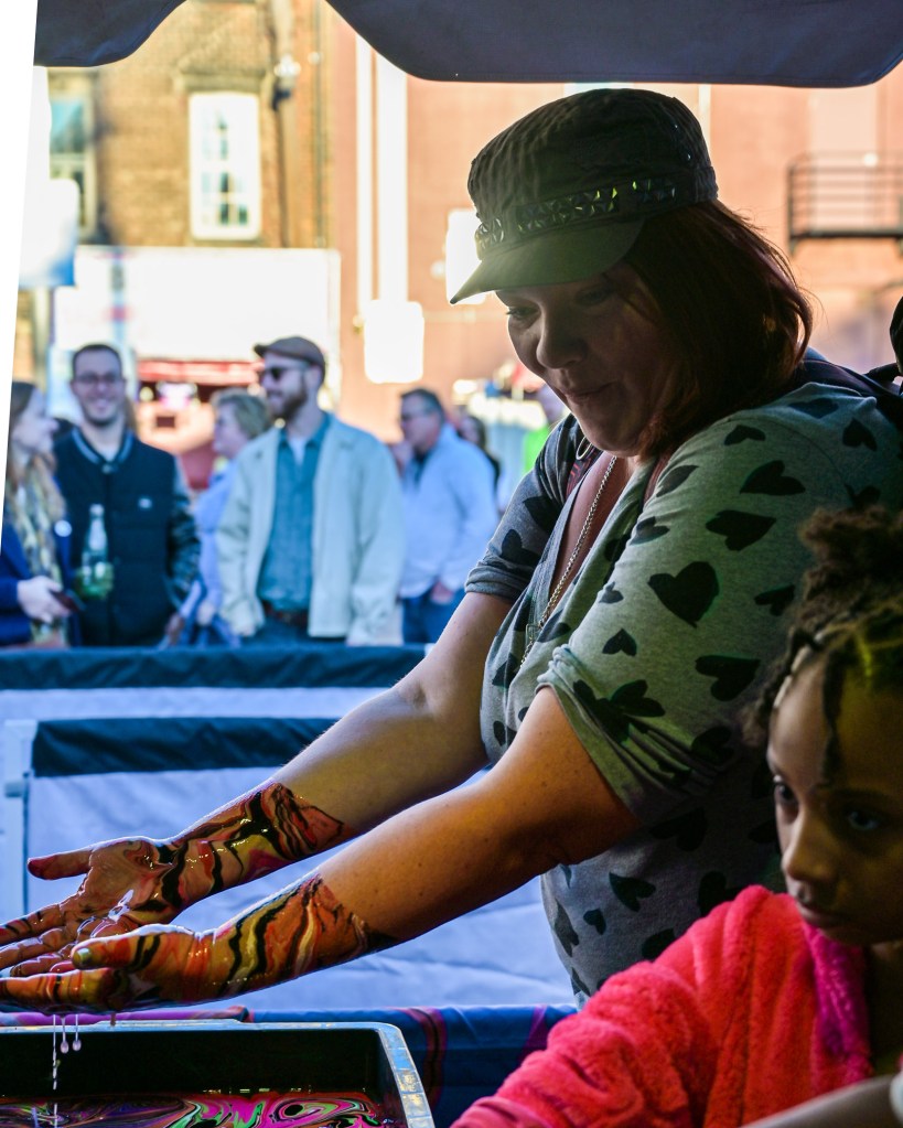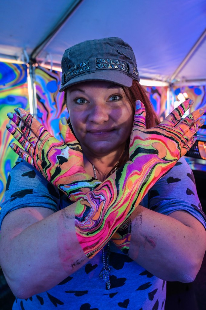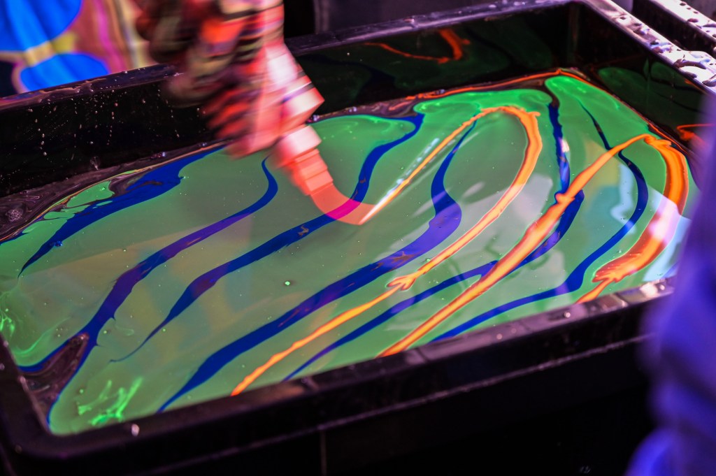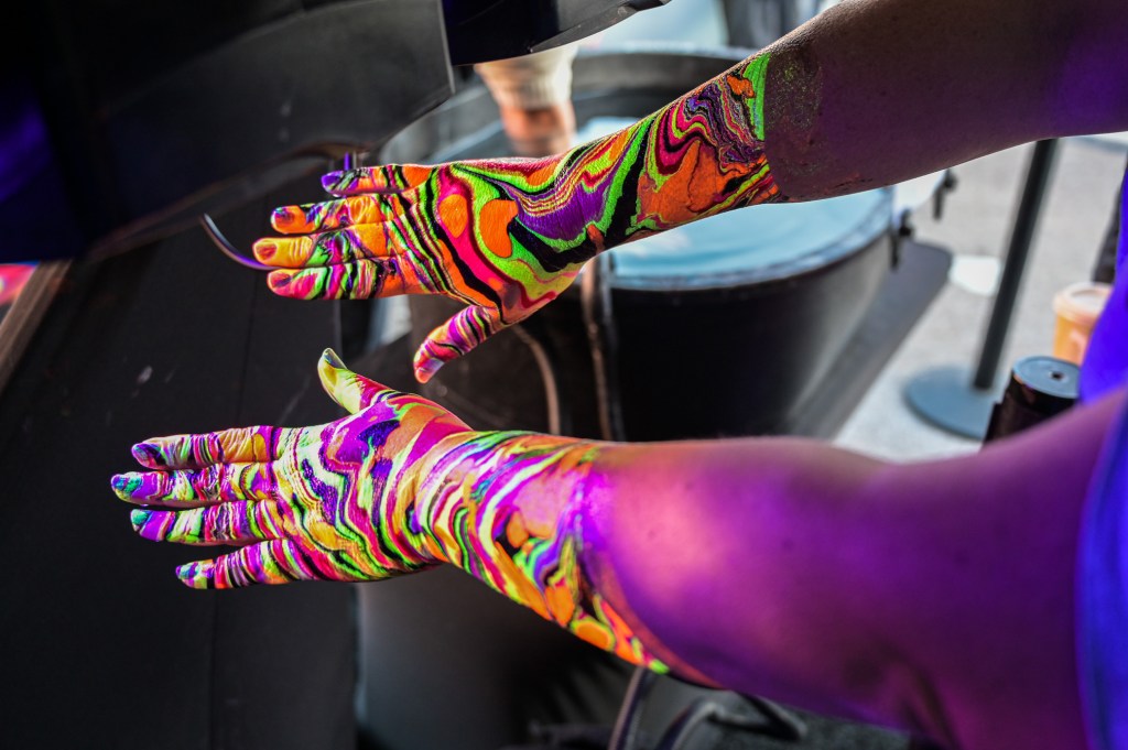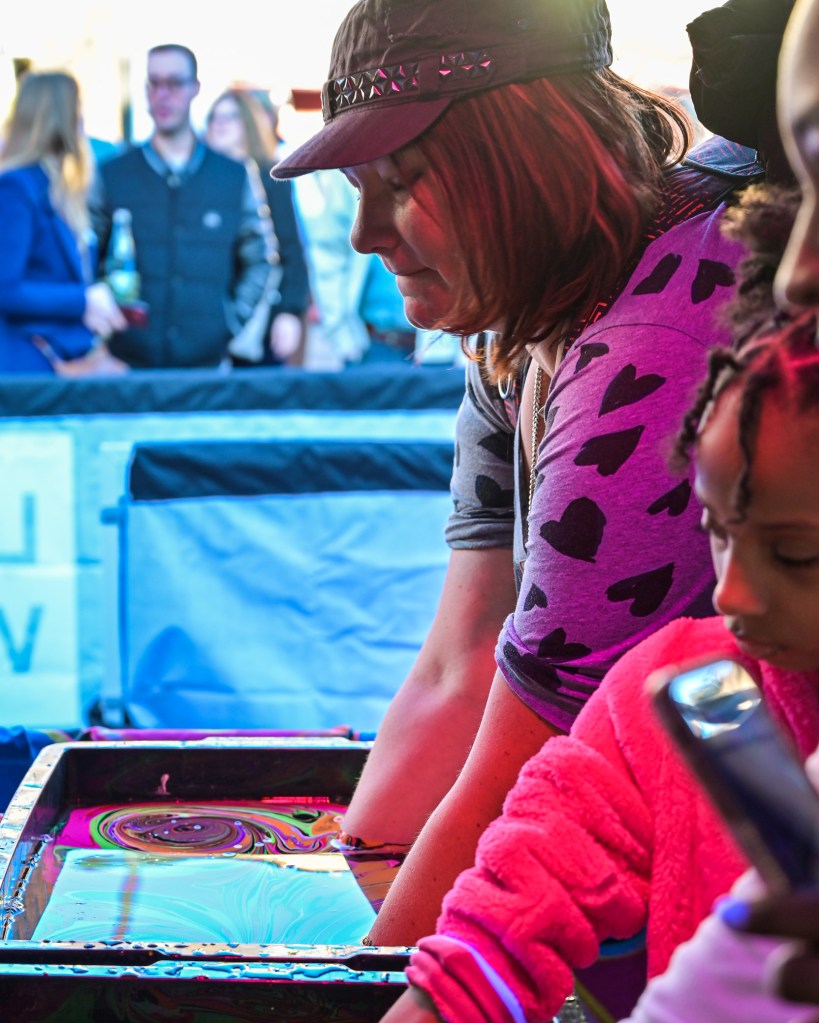 In the first zone, LifeWater had a free body marbling station. Dani took the plunge, literally and got her hands and forearms decorated!