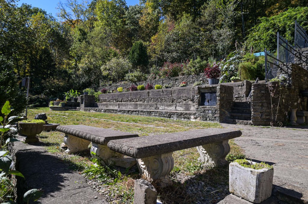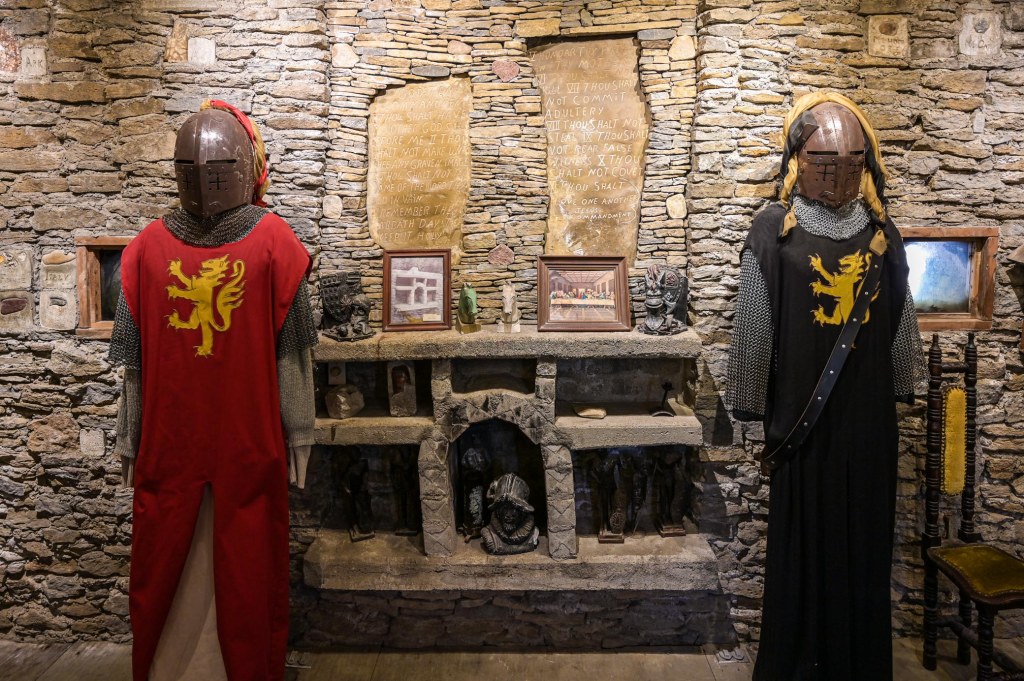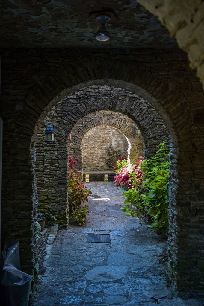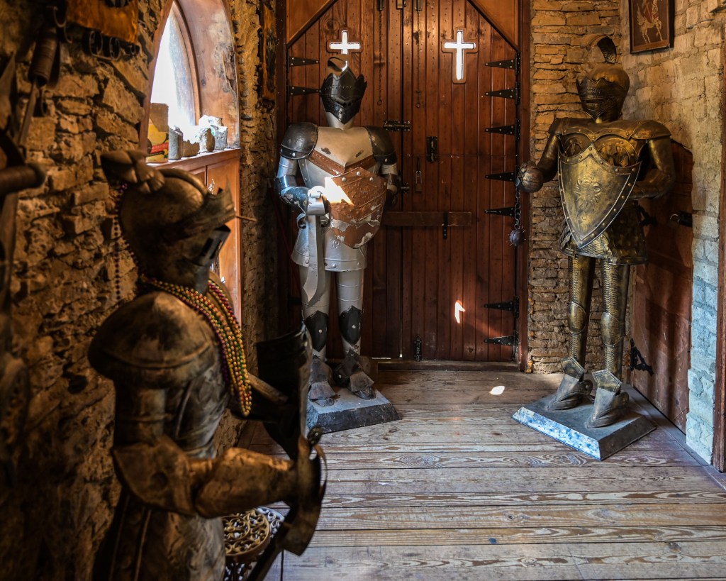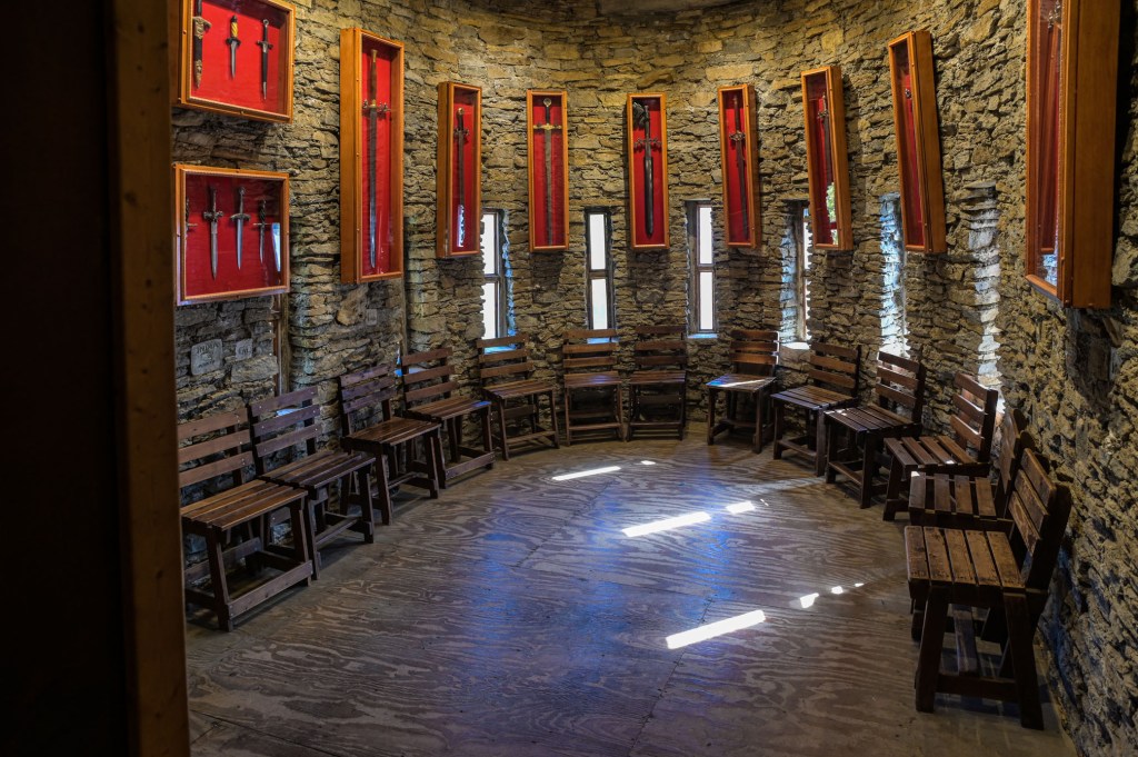 A minor admission fee of $5 per person gets you the run of the grounds. Upon entering the side door, one of the Knights of the Golden Trail will give you a brief history of Chateau LaRoche and the builder, Harry Andrews. They mention that one of the side chambers has a video running about the castle and Mr. Andrews. Please – take the time to watch the video. It is well worth it as it will give you a better appreciation of not only the architecture but of the man who built it.