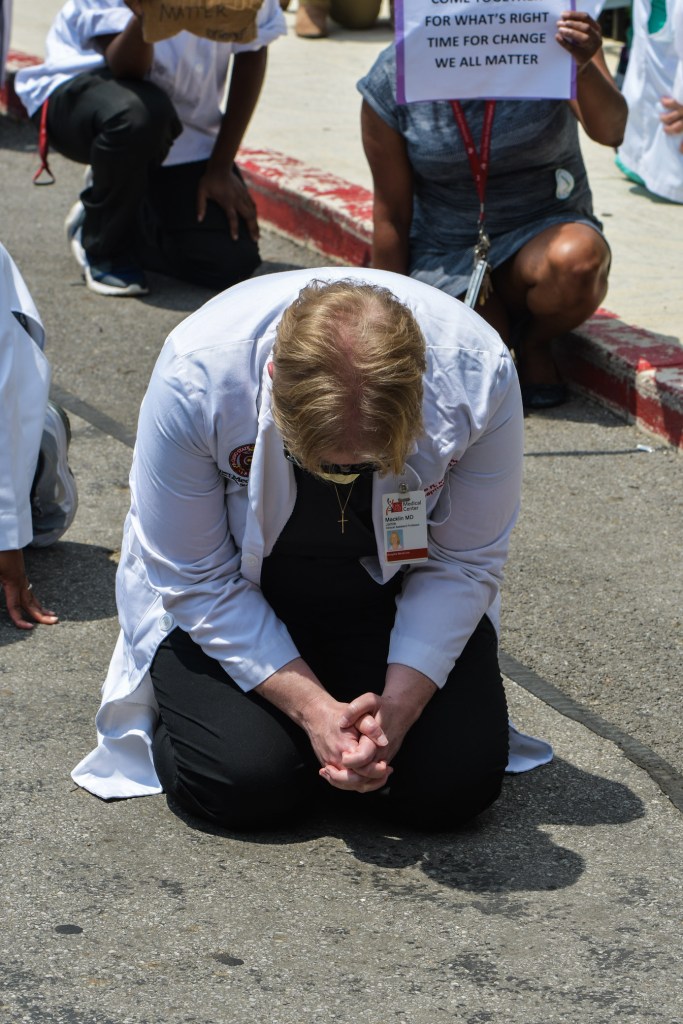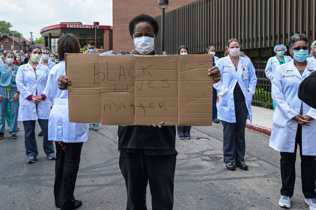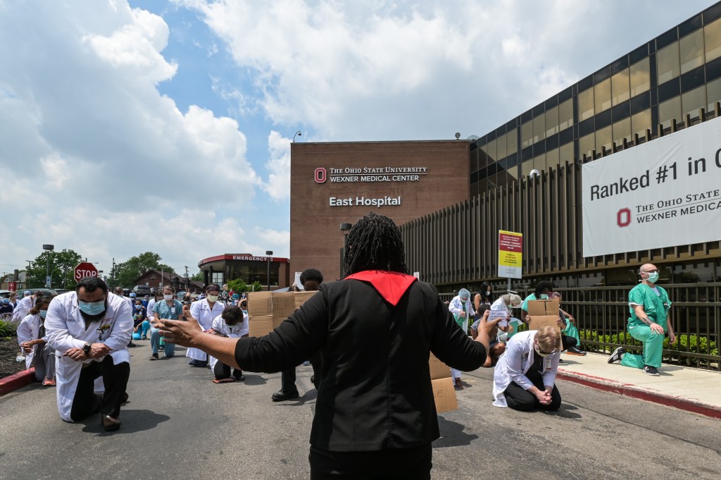 Ohio State Wexner Medical Center East had their employees come out and kneel for 8 minutes and 46 seconds, the elapsed time that the officer knelt on George Floyd.