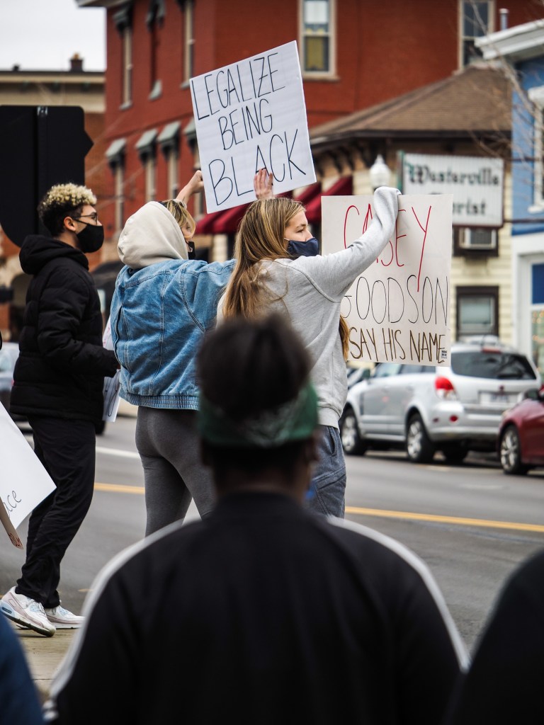 I headed to Westerville, going to Inniswood Metro Park and Uptown Westerville. I parked on the street in front of Java Central. I heard the chants of, “No justice, no peace, no racist police” as I parked the car.