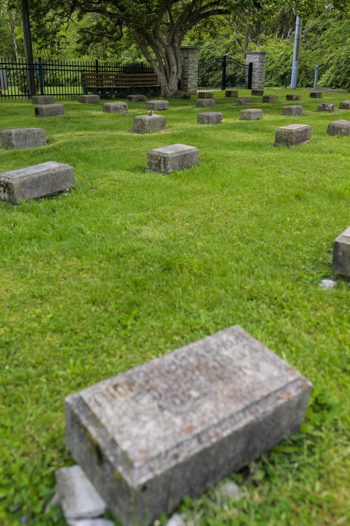 A few headstones have names on them, but the vast majority of the stones are just patient serial numbers.
