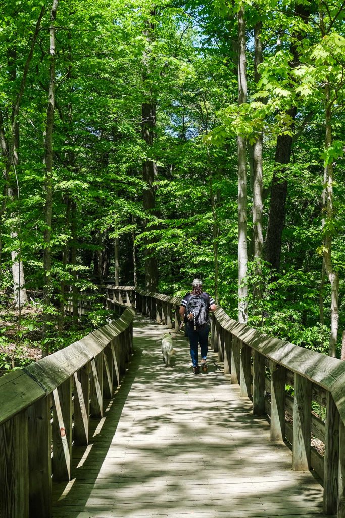 The walk to the lower and upper falls is relatively easy. Yes, there are stairs, but there are platforms to take breaks for those that need it. Nova had no issues either.