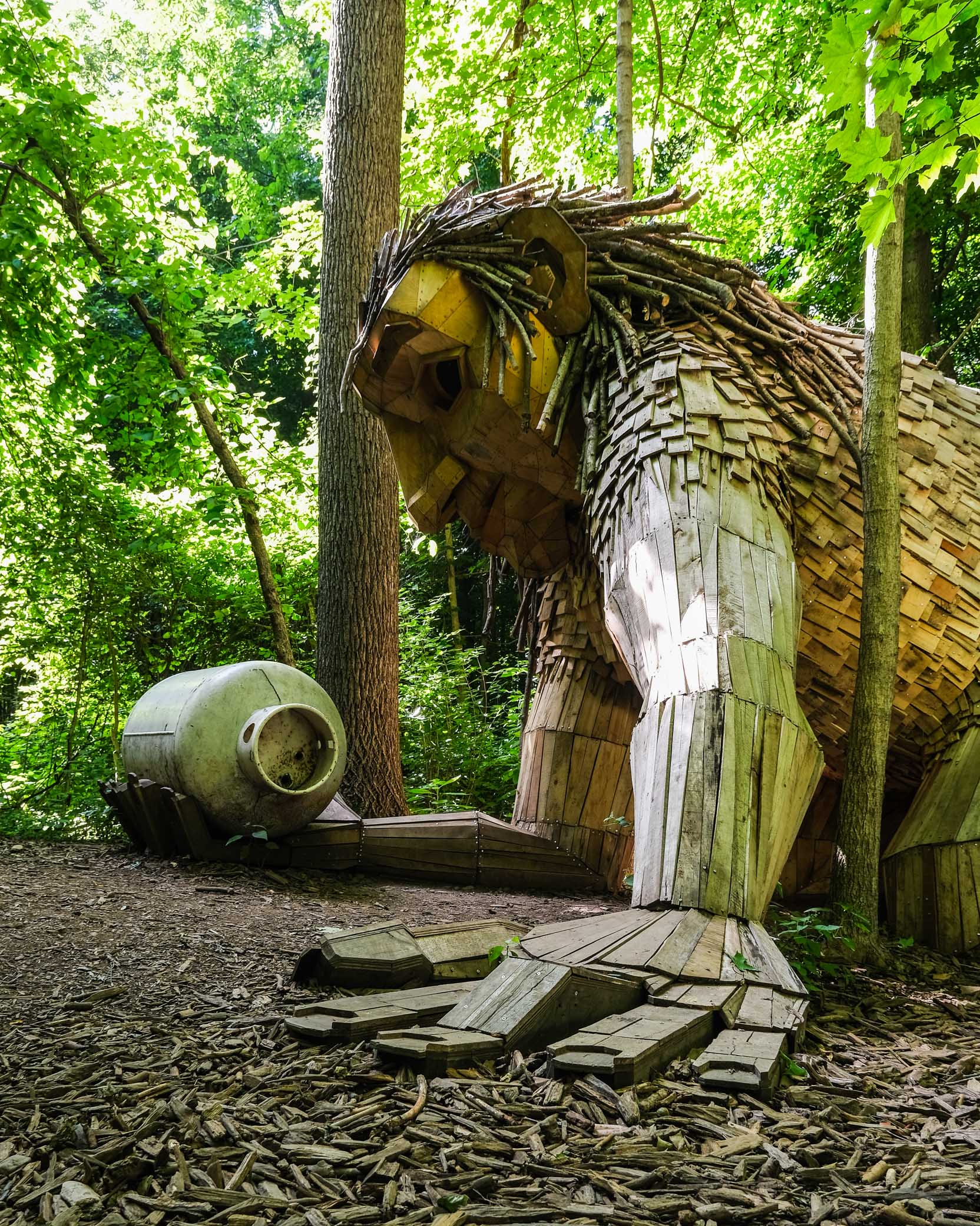 This installation of Thomas Dambo’s Wooden Giants is called, “The Troll That Hatched An Egg“.