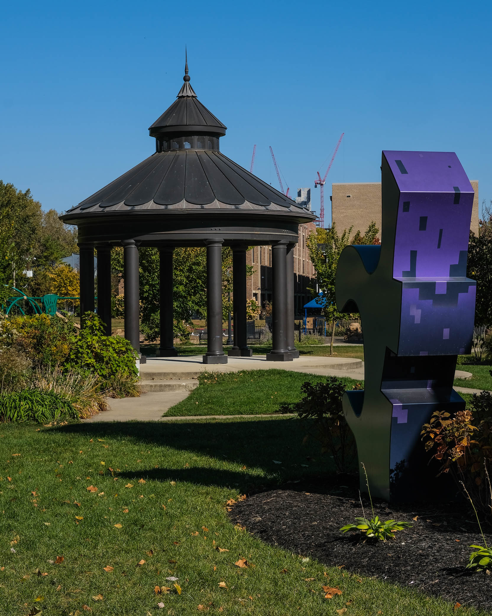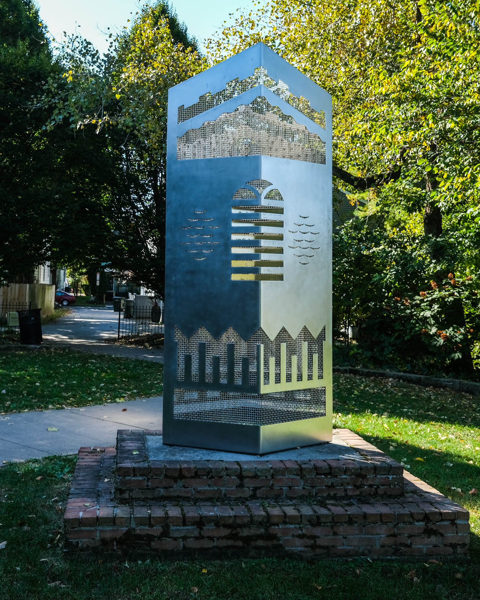 Side-By-Side Park is even smaller than Harrison Park, but it has some seating and a few pieces of interesting metal artwork, represented in the images below.