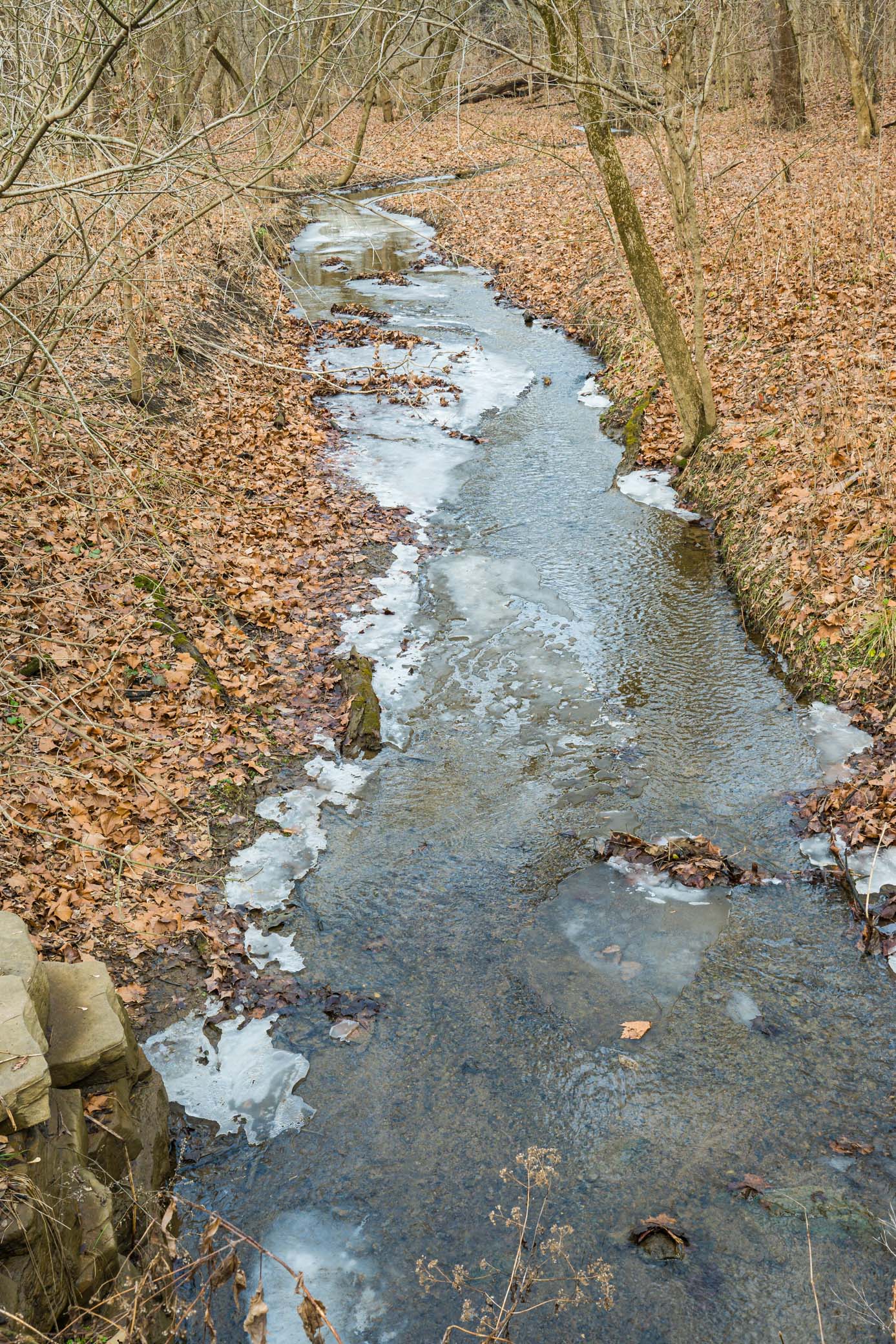 From the parking lot, there is access to the Big Walnut Creek waterway. A vast array of trails are within the park proper as well as a connecting trail that takes you to Academy Park to the north.