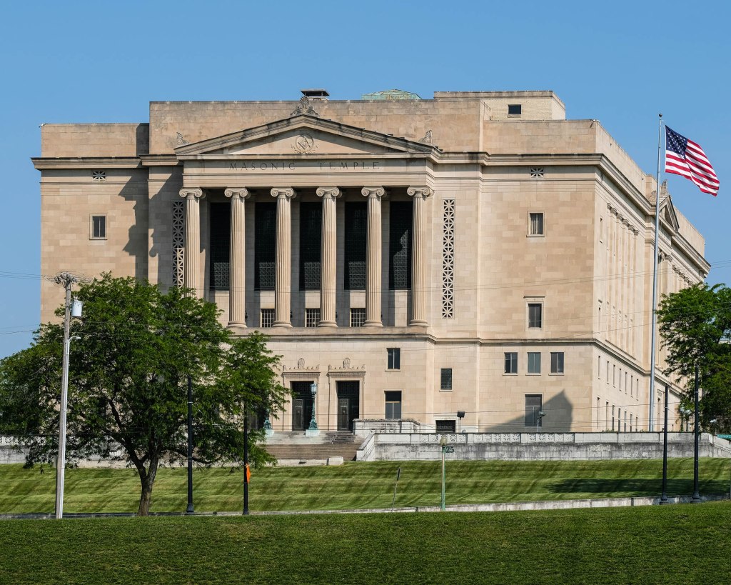 Walking down the multi purpose trail, looking to the right we saw the Masonic Temple building as well as the Dayton Art Museum to it’s right.