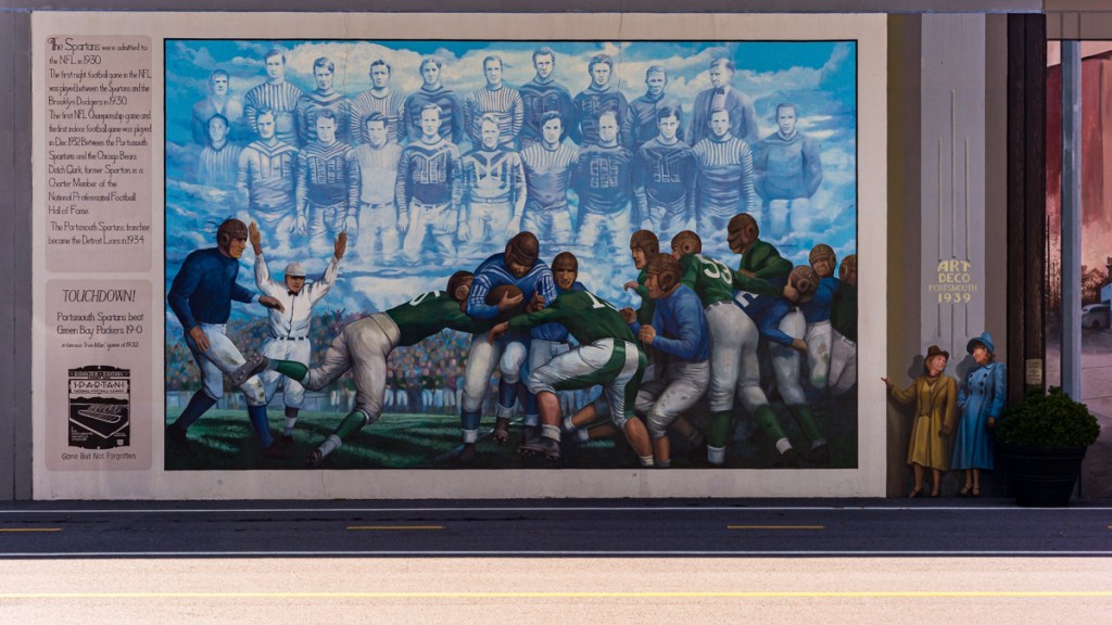 The floodwall was erected to protect the town from the river overflowing. This started back in 1938 and has been protecting Portsmouth ever since.