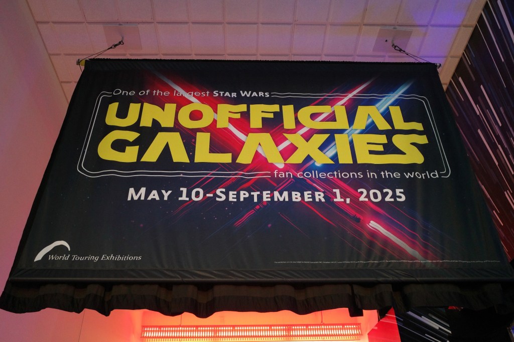 “Unofficial Galaxies” at COSI (May 10–Sept. 1, 2025) is an immersive, Star Wars-inspired exhibition that brings together more than 150 artifacts from one of the largest private collections of Star Wars memorabilia. The 10,000-square-foot exhibit features:
