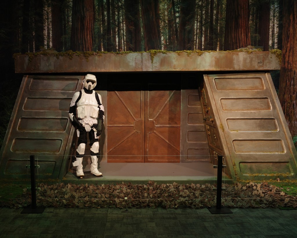 - Authentic movie props and costumes, including Anakin Skywalker’s workshop desk and chair, a Han Solo in carbonite prop, and costumes for Darth Vader, Boba Fett, and Stormtroopers.